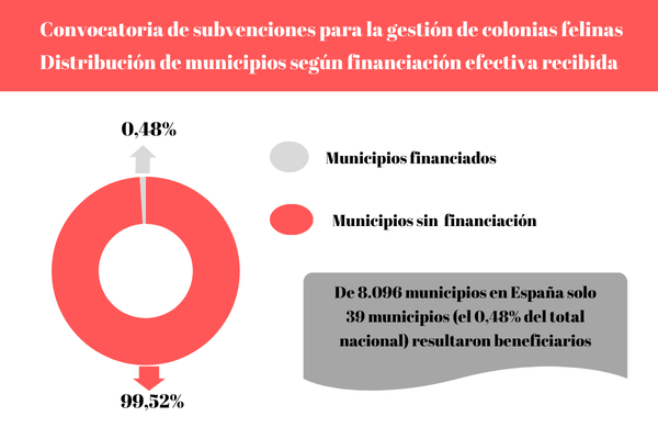 - De 8.096 municipios en España, solo 1.148 (el 14%) presentaron la solicitud de subvención para la gestión de colonias felinas.